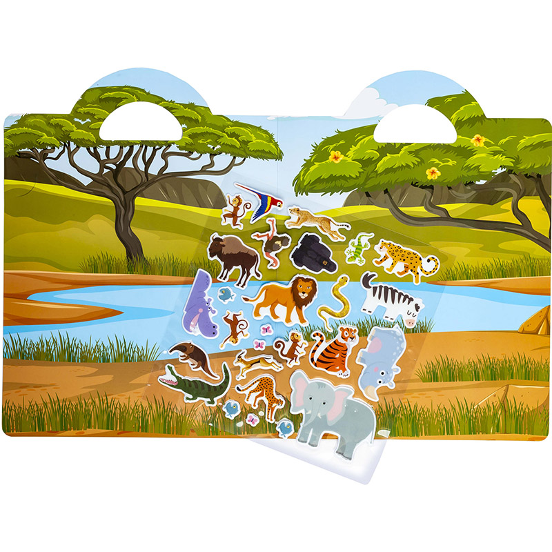 Reusable puffy sticker play set with Safari theme.