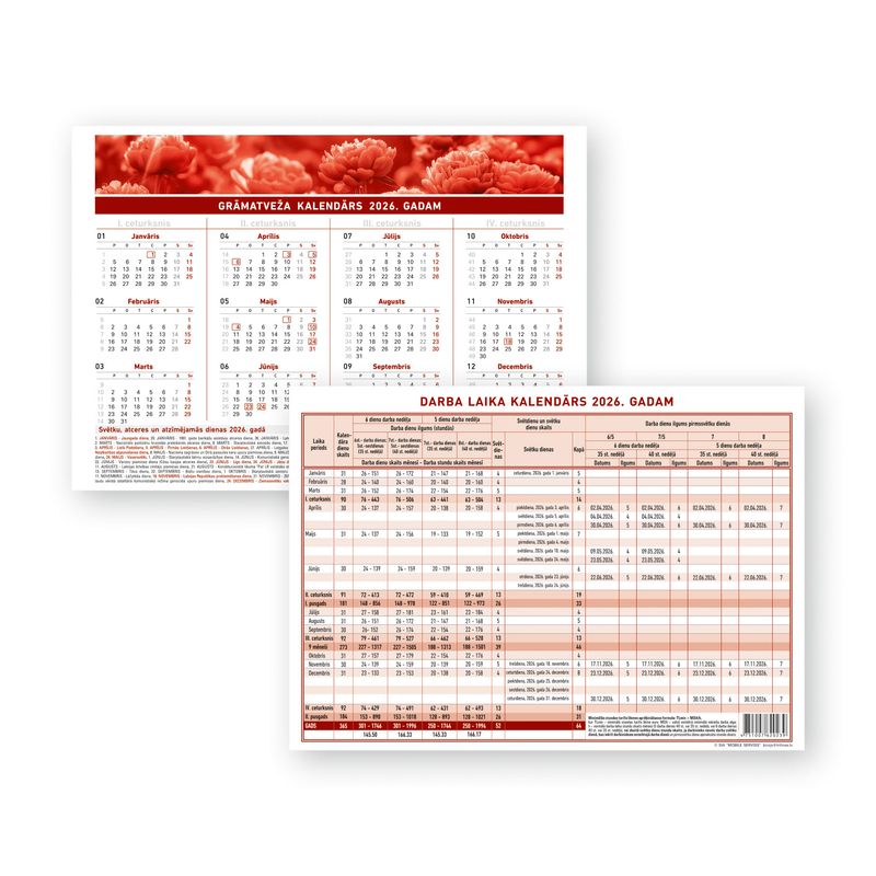 galda tabulveida kalendārs, formāts A4, satur grāmatvedim noderīgu informāciju.