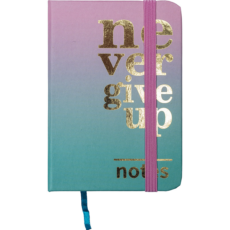 Bloknots A6 līniju 80lp. cietos vākos ar gumiju "Never give up" tikai 1.56 EUR | Klades, bloknoti, nošu burtnīcas - Centrum.lv